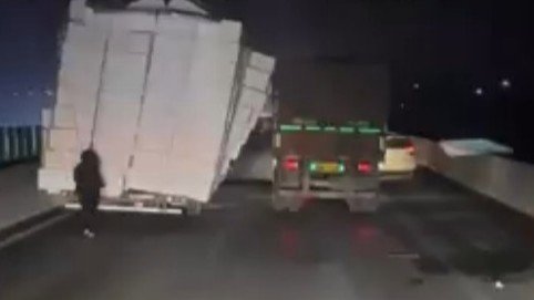 4月3日,山东潍坊与东营交界的一座大桥上,一辆满载泡沫板的山东货车整车货物向右猛倾。就在此时,后方一辆冀F半挂车加速贴了上去,为其托住倾斜货物。几经辗转,记者找到这位冀F半挂车的司机。他叫韩少虎,河北保定曲阳人,今年40岁,跑车已经有20年。